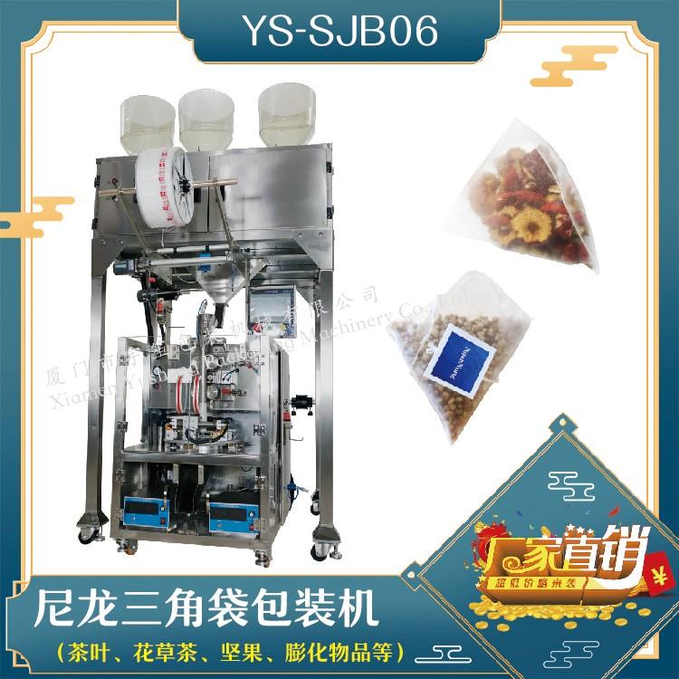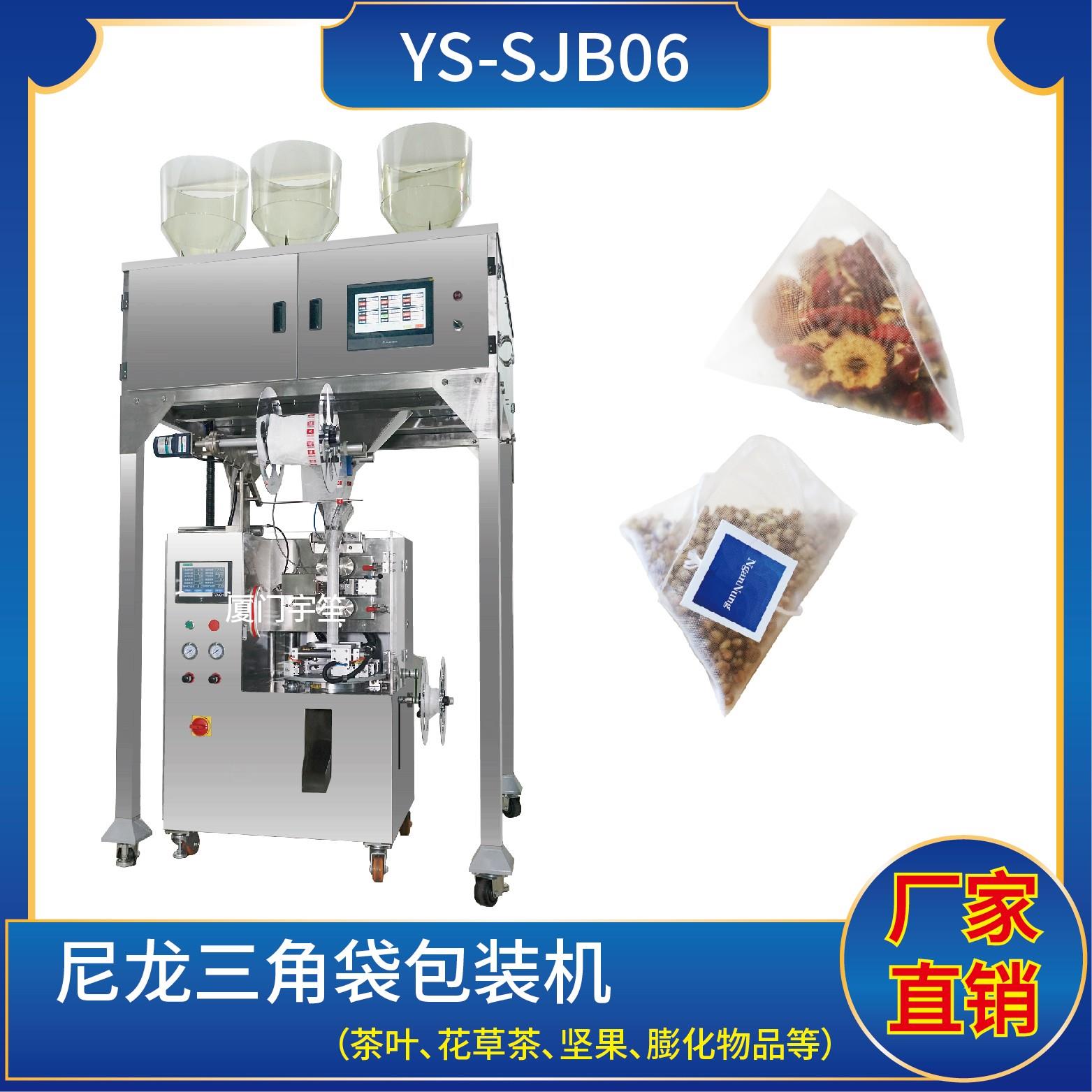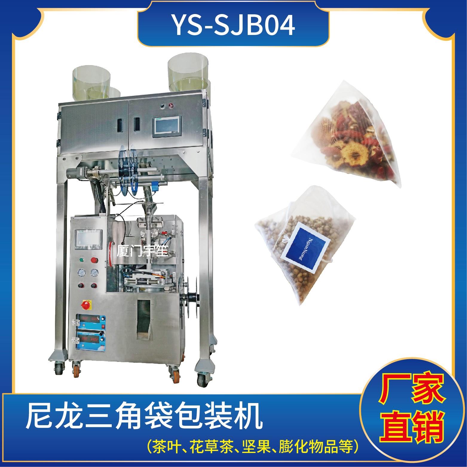 YS-SJB04-NW 三角包內(nèi)外袋包裝機(jī)一、特點(diǎn):1、適用于綠茶、紅茶、花茶、咖啡、中國茶、健康茶、中藥茶、顆粒等。2、可用于平面袋包裝、三角立體包裝等形式包裝袋。3、整機(jī)可自動完成上料、計(jì)量、制袋、封口、切斷、計(jì)數(shù)、成品輸送等功能。4、選用先進(jìn)超聲波封口,電子稱計(jì)量下料方式,封口牢固,下料準(zhǔn)確。5、包裝材料:尼龍…